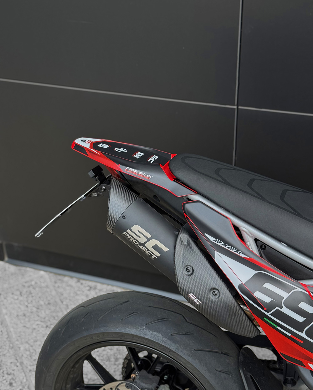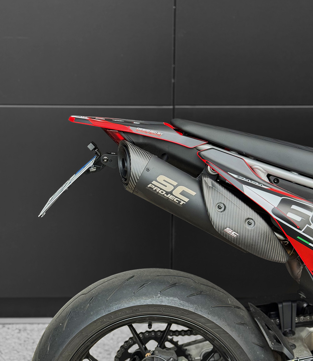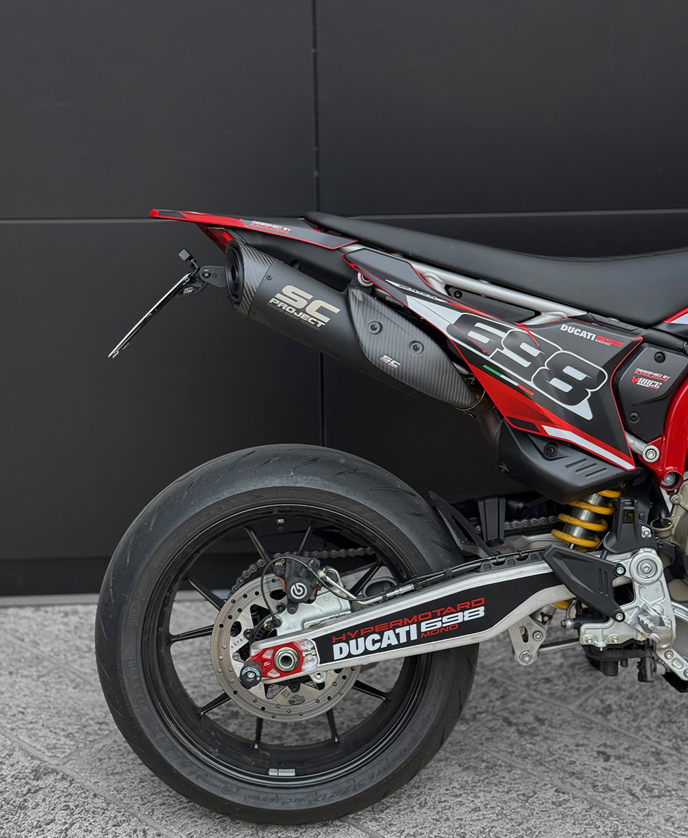 Kompatibel mit Hypermotard 698 Base- und RVE-Modellen ab 2024 für längere Serien- oder Aftermarket-Schalldämpfer (SC Project, Spark, Akrapovic usw. usw.)
