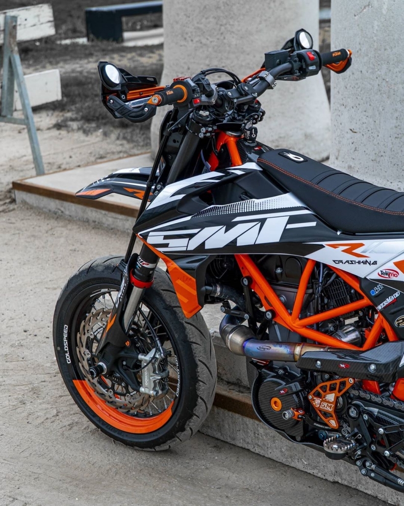 Vorderer Kettenradschutz aus Knüppel gefertigt. Ermöglicht eine einfachere Evakuierung von Schlamm in Enduro und Rallyefahrten, wodurch das Motorgehäuse sauberer bleibt.