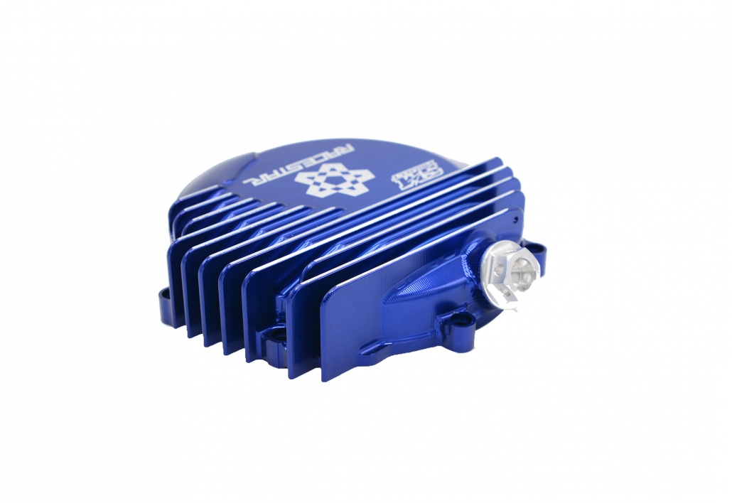 Better heat dissipation due to an extra 35% surface area and 120cc additional oil volume wich improves engine oil and clutch cooling. Can be custom engraved with riders logo/name/race number