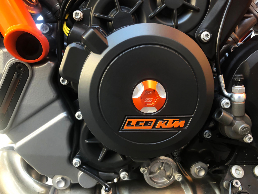 CNC ignition cover plug for KTM engines, machined from billet and machined after anodizing. Available for:
