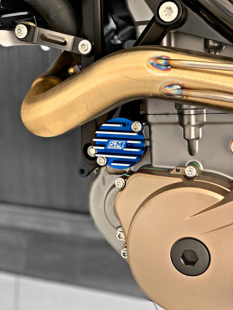 Coperchio filtro olio motorizzazioni Husqvarna 701 – Ktm 690 ricavato dal pieno con lavorazione cnc in alluminio anticorodal 6082