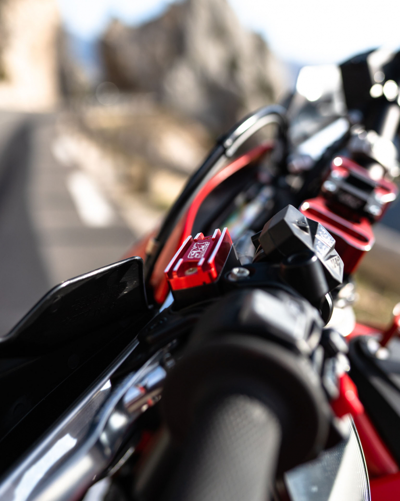 Viene realizzato dal pieno con lavorazione CNC, inciso a laser e ripreso in macchina post-anodizzazione