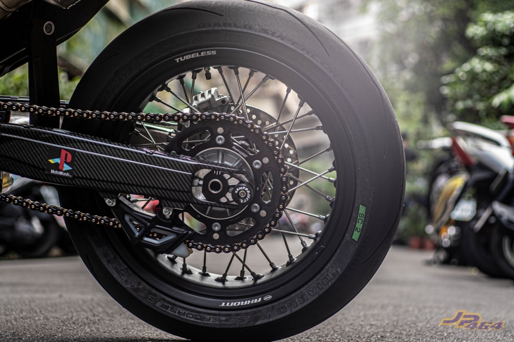 Kit registri tendicatena con slider integrato. Proteggono il forcellone/dado/perno in caso di caduta