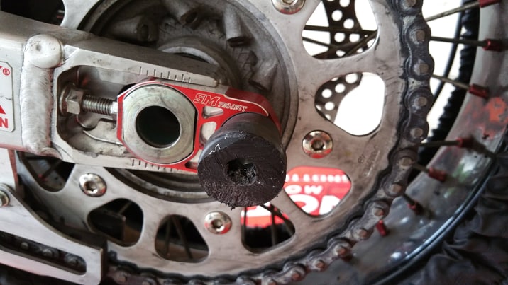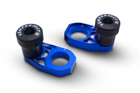 Kit registri tendicatena posteriori con tampone integrato. Proteggono il forcellone/dado/perno in caso di caduta